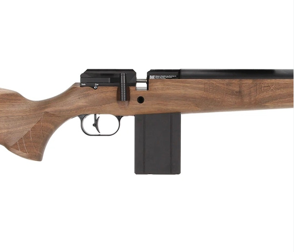 UNO DE LOS RIFLES MAS COMODOS Y DE MEJOR RELACION PRESTACIONES-PRECIO ES EL DRS CLASICO, ESTA VERSION EN CAÑON DE 700MM MUY POTENTE HASTA 72 PIES LIBRAS DE ENERGIA, EXCELENTE PARA TIRO DEPORTIVO O CACERIA PEQUEÑA, ESTE RIFLE PCP CUENTA CON FAMOSO CAÑON STX DE 700MM Y CON EL DEPOSITO DE AIRE ALREDEDOR DEL CAÑON LO QUE LE DA ESE ASPECTO CAZADOR, TODO EN UNA HERMOSA CULATA DE NOGAL.
